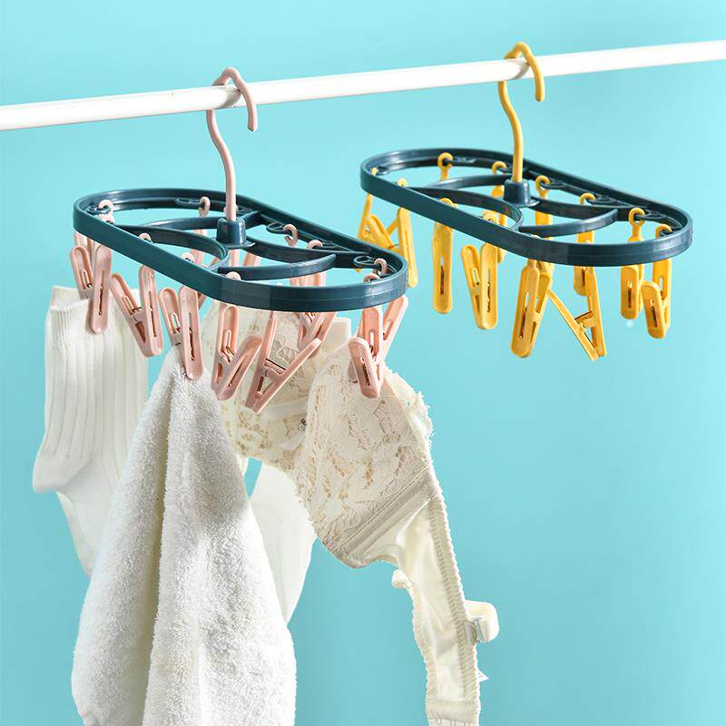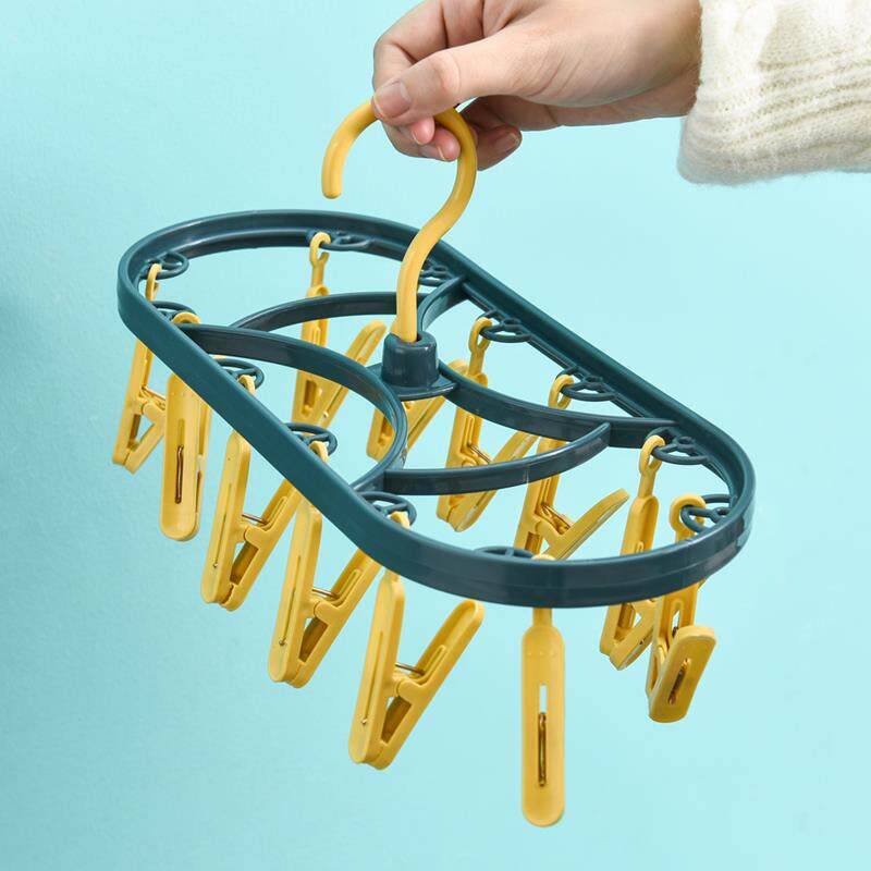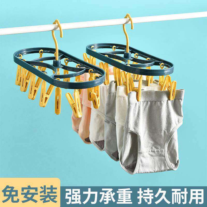 家用多功能夹子晾衣架宿舍内晾袜子衣架折叠多夹子防风晾晒架神器
